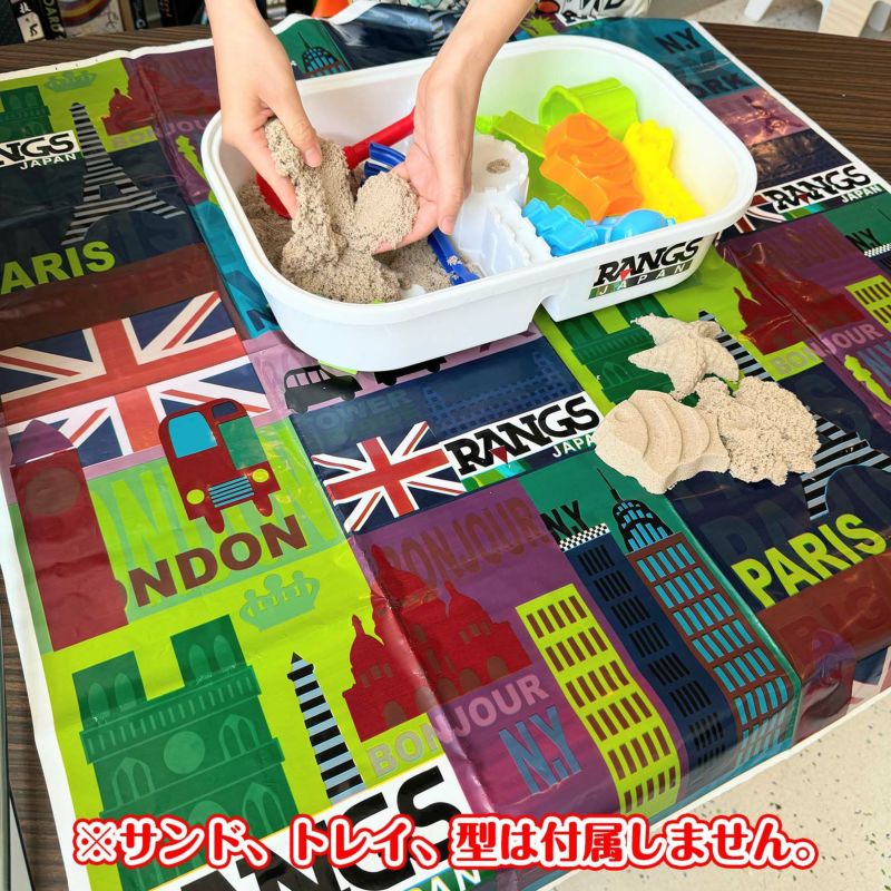 プレイシートを敷いて、お片付け簡単! 室内用のお砂遊びがより手軽に楽しめます。 1m×1mと広々使用できます。